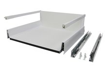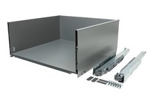 De Blum Legrabox lade is de nieuwe, modern vormgegeven lade van Blum. Deze lade kenmerkt zich door de smalle (12,8 mm) en dichte zijwanden. Deze zijwanden lopen aan de binnenzijde door tot de bodem wat een praktisch in te delen lade tot gevolg heeft. De volledig uittrekbare Blum Legrabox ladegeleiders komen qua kenmerken overeen met de Blum Movento ladegeleiders. Met een draagvermogen van 40 of 70 kg zijn deze geleiders geschikt voor een besteklade maar zeker ook voor een volle voorraadlade.